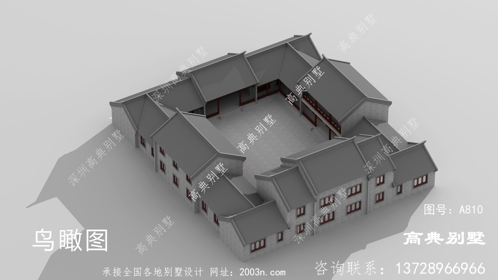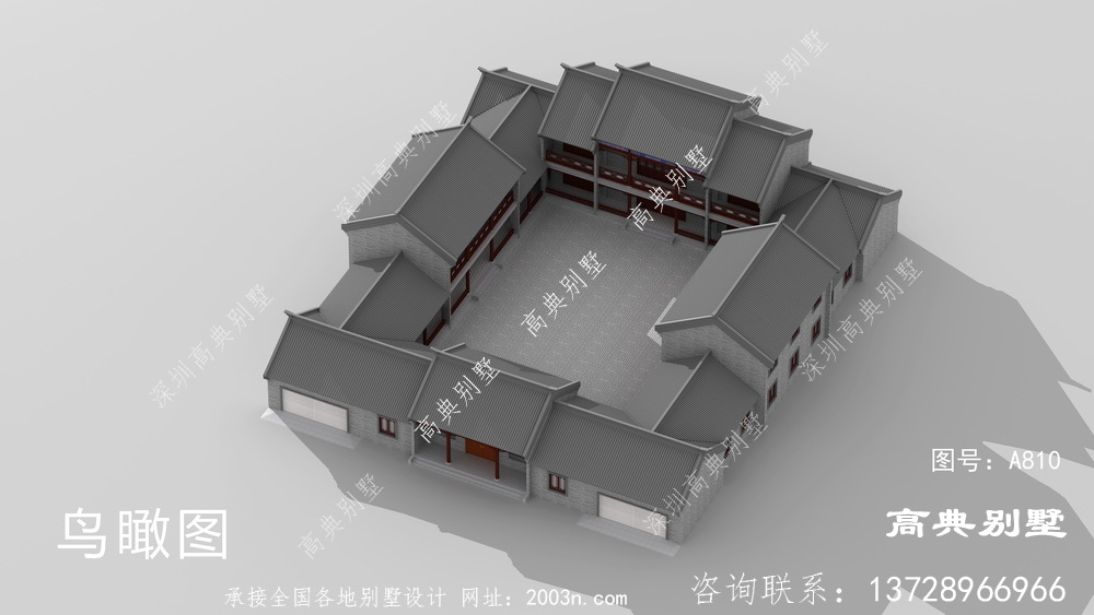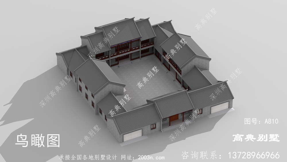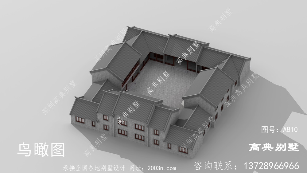 新中式三层四合院大户型别墅自建设计图
